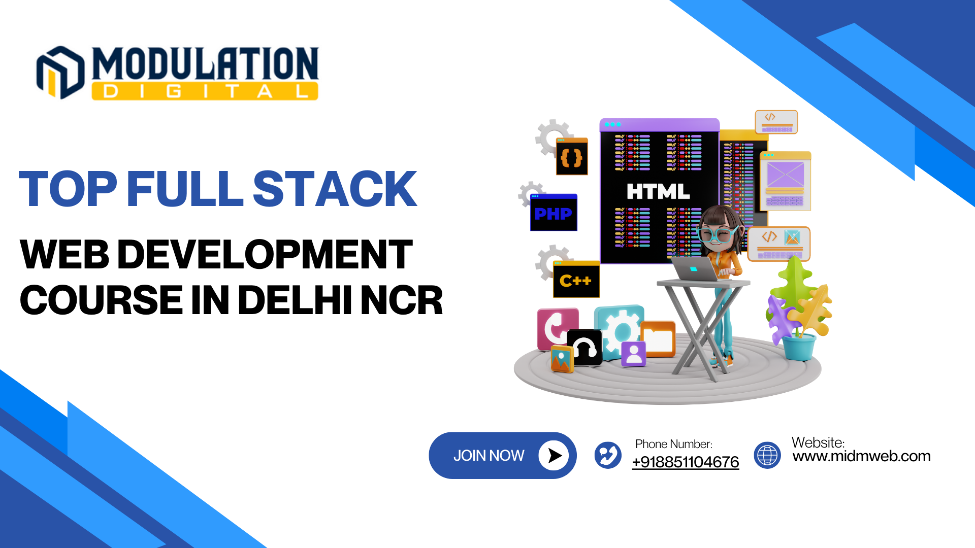 Modulation Digital, the Best web development institute in Delhi NCR with placement, offers hands-on…